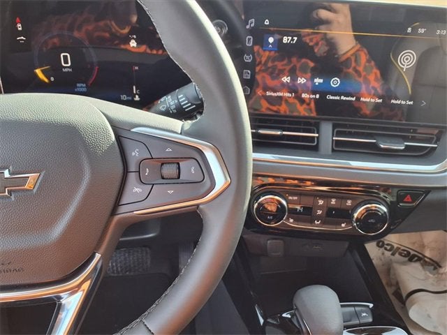 2-Way Adjustable Front Head Restraints, 2-Way Power Driver Lumbar Seat Adjuster, 3.50 Final Drive Axle Ratio, 4-Way Manual Front Passenger Seat Adjuster, 4-Wheel Disc Brakes, 6 Speakers, 6-Speaker Audio System Feature, 8-Way Power Driver Seat Adjuster, ABS brakes, Adaptive Cruise Control, Air Conditioning, Alloy wheels, AM/FM radio: SiriusXM, Auto High-beam Headlights, Automatic temperature control, Brake assist, Bumpers: body-color, Compass, Delay-off headlights, Driver Confidence Package, Driver door bin, Driver vanity mirror, Dual front impact airbags, Dual front side impact airbags, Electronic Stability Control, Emergency communication system: OnStar One Essentials, Evotex Seat Trim, Exterior Parking Camera Rear, Front anti-roll bar, Front Bucket Seats, Front Center Armrest, Front reading lights, Front wheel independent suspension, Fully automatic headlights, Heated door mirrors, Heated Driver and Front Passenger Seats, Heated front seats, Heated steering wheel, Illuminated entry, Lane Change Alert with Side Blind Zone Alert, Leather steering wheel, Low tire pressure warning, Occupant sensing airbag, Outside temperature display, Overhead airbag, Overhead console, Panic alarm, Passenger door bin, Passenger vanity mirror, Power door mirrors, Power driver seat, Power steering, Power windows, Premium audio system: Chevrolet Infotainment 3, Radio data system, Radio: AM/FM Stereo Audio System, Rear Cross Traffic Alert, Rear Park Assist, Rear window defroster, Rear window wiper, Remote keyless entry, Security system, SiriusXM Trial Subscription, Speed control, Split folding rear seat, Spoiler, Steering wheel mounted audio controls, Tachometer, Telescoping steering wheel, Tilt steering wheel, Traction control, Trip computer, Variably intermittent wipers, Wheels: 18 Black-Painted Aluminum, Wireless Apple CarPlay/Wireless Android Auto.